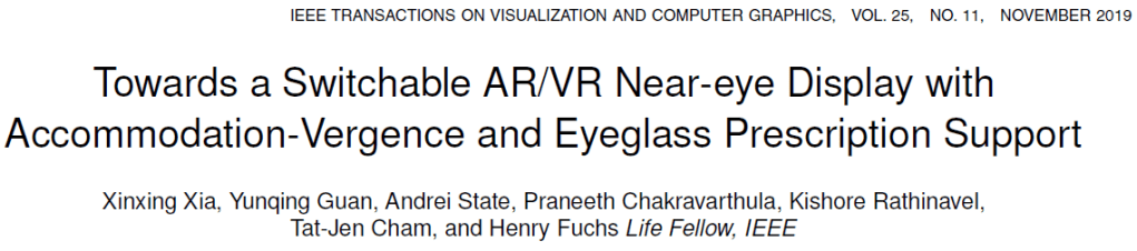 2019년에 나온 논문이고, 음.. 1저자가 다른 대학교 소속인것 같아 조금 부적절한 것 같은데, 교신 저자가 UNC 교수님이시니까 아무튼 UNC에서 낸 논문이라고 생각해야겠다. 내가 맡게 된 프로젝트가 Lightfield를 다루어서 요즘 VAC 및 3D scene을 구현한 NED 논문을 찾아보다가 시력 보정도 된다고 하기에 읽어본 논문이다.